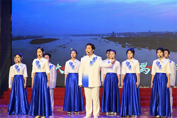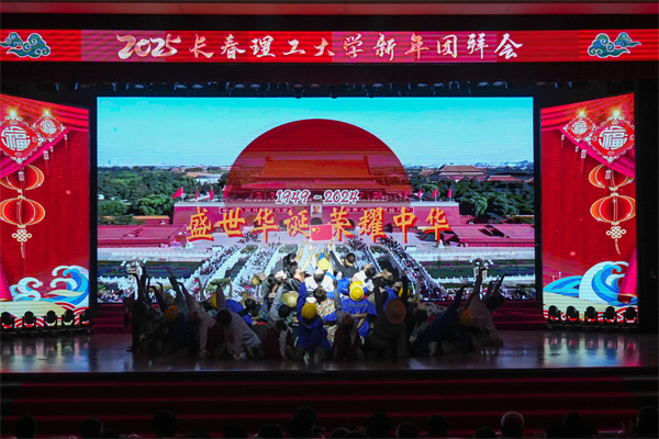 师生带来的精彩文艺表演点燃了现场气氛。小合唱《万疆》以其悠扬的旋律和深情的演唱,诠释了青年学子对祖国深深的爱恋;经济管理学院的歌伴舞《红梅赞》(京剧版)将京剧元素与现代舞蹈完美融合,带给观众一种全新的感受;计算机科学技术学院的舞蹈《心光·援梦》,展现了青年学生用青春和知识点亮偏远地区孩子梦想的感人故事;法学院的舞蹈《时代征程》,展现了建设者们在祖国宏伟蓝图上挥洒汗水的壮丽画卷。配乐诗朗诵《我追随的光,是五角星的光》、相声《外语专家》、经典歌曲联唱等展现了教师们课堂之外的别样风采。